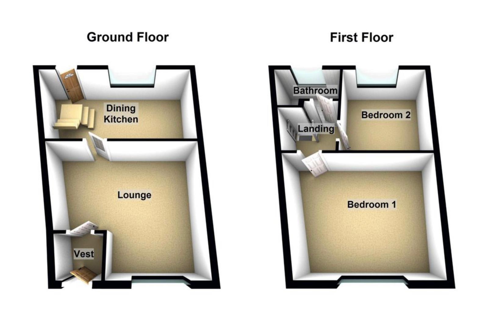 Two Bedrooms to the first floor