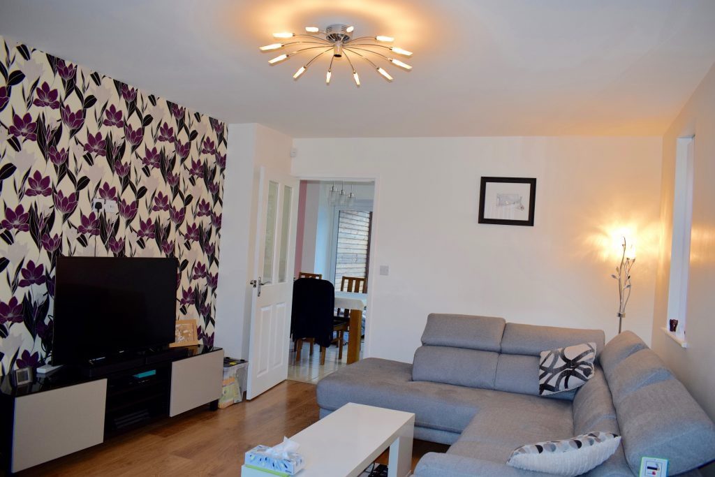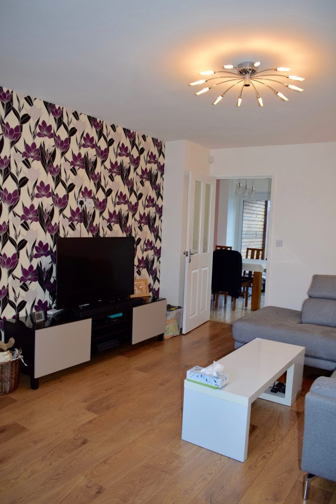 Laminate wood floors to lounge and entrance hallway